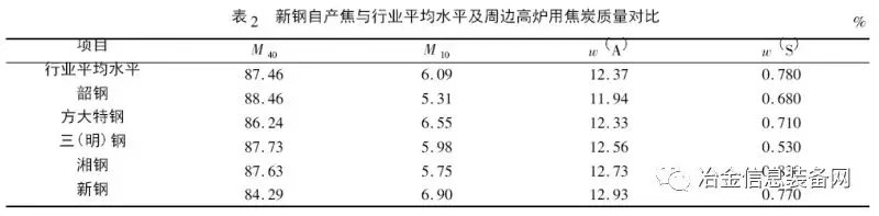 通過選擇合理渣系、加強(qiáng)管理、取消中心加焦冶煉等措施,實(shí)現(xiàn)了新鋼2 500 m3 高爐低品位、高比例燒結(jié)礦爐料結(jié)構(gòu)下的爐況長期穩(wěn)定順行。同時(shí),其技術(shù)經(jīng)濟(jì)指標(biāo)與行業(yè)同類型高爐指標(biāo)對(duì)比,在新鋼2 500 m3 高爐入爐品位低于行業(yè)平均水平0. 81%的情況下,新鋼燃料比較行業(yè)水平低35. 95 kg /t,煤比高12. 57 kg /t,綜合焦比降低38. 06 kg /t。